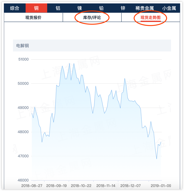 2)查看基本金屬近半年的走勢圖,請點(diǎn)擊網(wǎng)站首頁現(xiàn)貨報價單個品種專區(qū),對應(yīng)品種的現(xiàn)貨走勢圖即可查詢,此外還有相關(guān)品種的庫存信息哦。